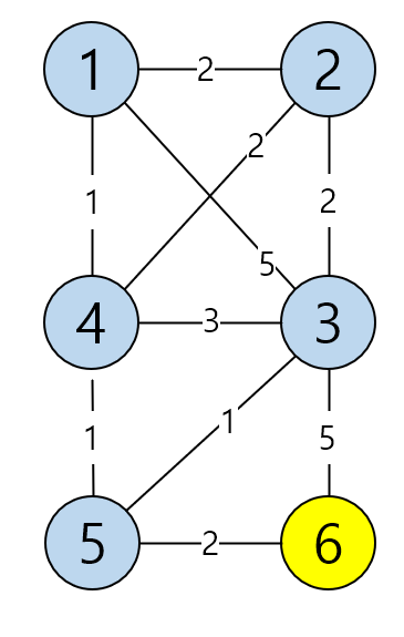 마지막 6번 노드는 3, 5 하고 연결이 되어 있네요.