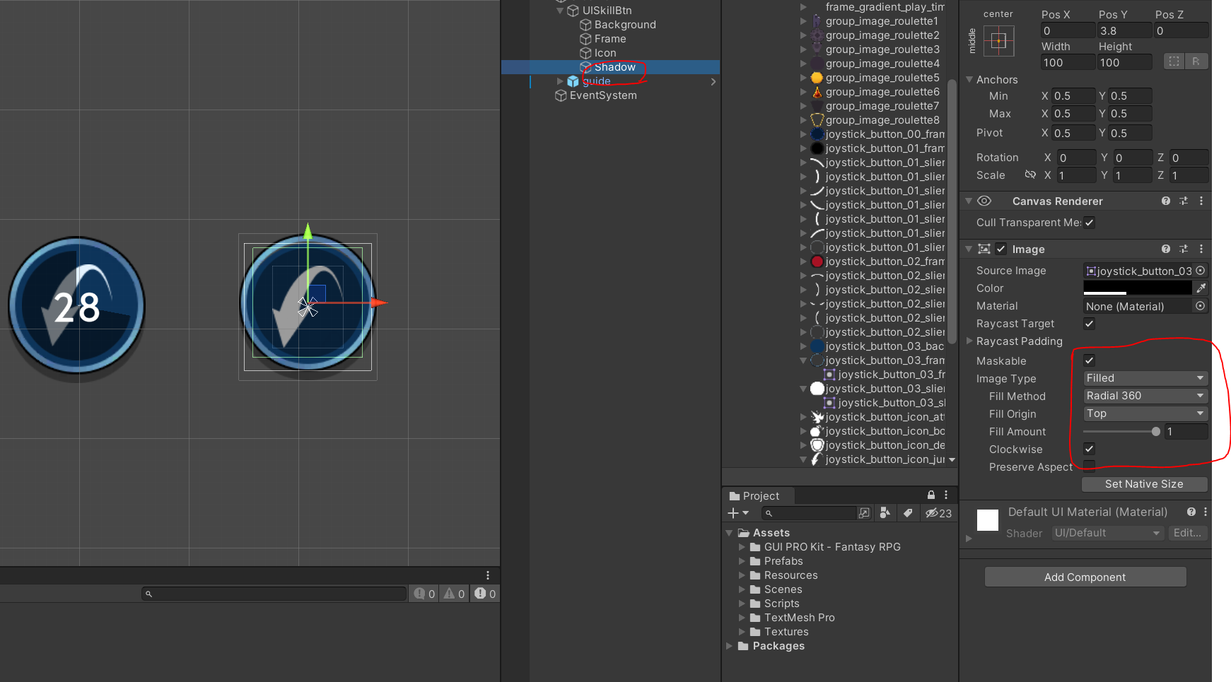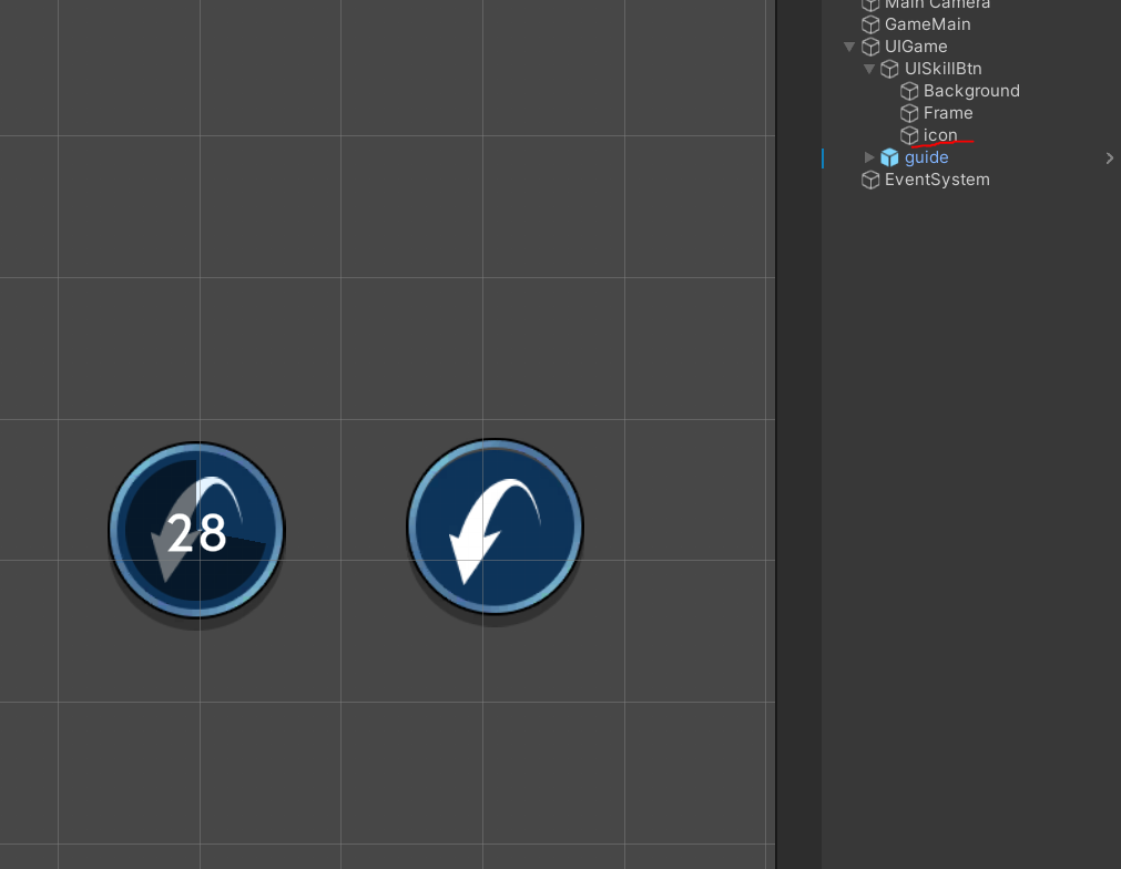 5. 스킬 쿨타임을 표시해줄때 어두운 이미지를 연출할 그림자를 넣어줘요.
