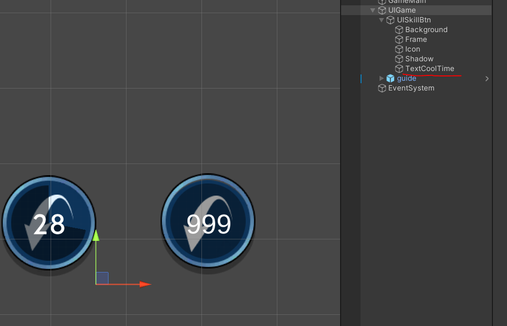 6. 스킬 쿨타임을 연출할 텍스트를 넣어줘요.
