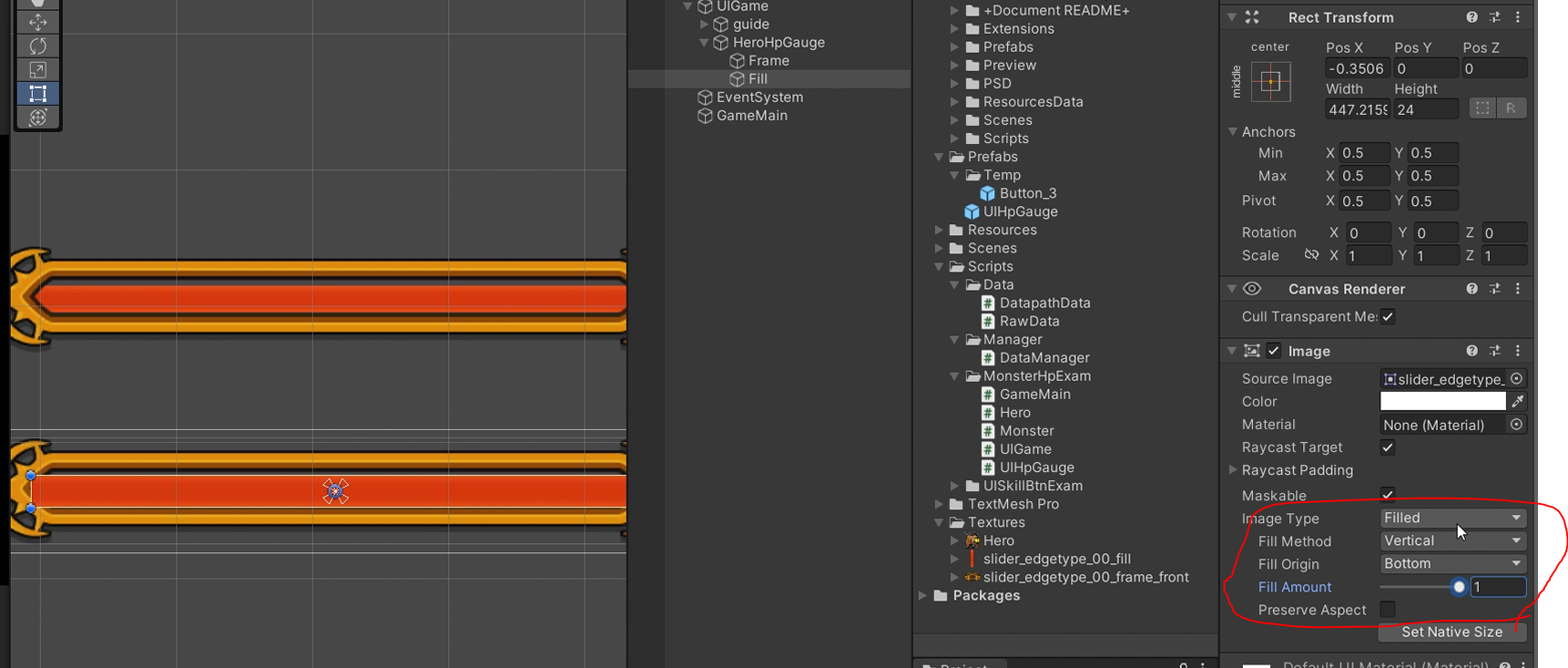 3. 체력을 표시해줄 Fill을 넣어줍니다.