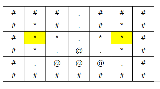 map[ny][nx] = '@';