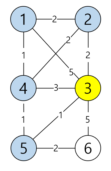 3번 노드는 1, 2, 4, 5, 6 하고 연결이 되어 있네요. 모든 노드하고 연결이 되어 있어요.