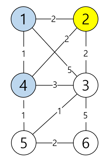 갖는 노드는 2번과 5번이 있는데 이때는 앞에 인덱스부터 찾아요.