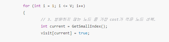 // 3. 방문하지 않는 노드 중 가장 cost가 적은 노드 선택.