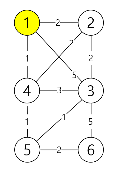 1. 출발 노드는 1번 노드부터 한다고 가정했어요.