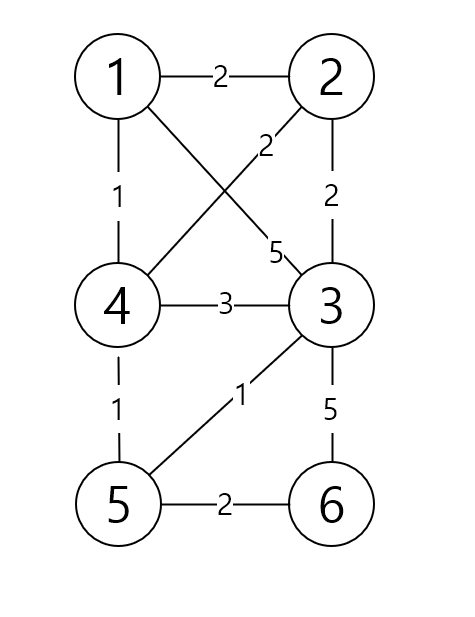 이렇게 모든 노드 방문이 끝나면 1번 노드에서 각 노드까지 가는 최적의 cost를 구할 수 있어요.