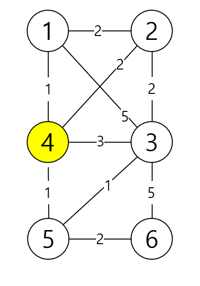 4번 노드에서 갈 수 있는 노드들은 1, 2, 3, 5번 노드가 있어요.