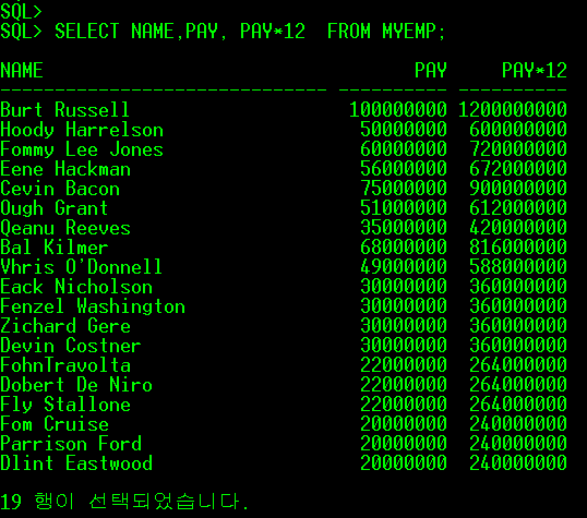 - BETWEEN 연산자로 PAY가 20000000 ~ 30000000 사이인 사람들의 이름과 PAY를 검색해보자.