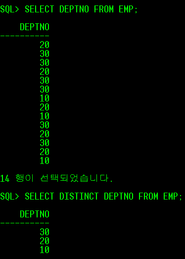 예) SELECT DISTINCT DEPTNO