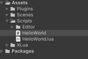 HelloWorld.cs와, HelloWorld.lua.txt 파일을 만들어요.