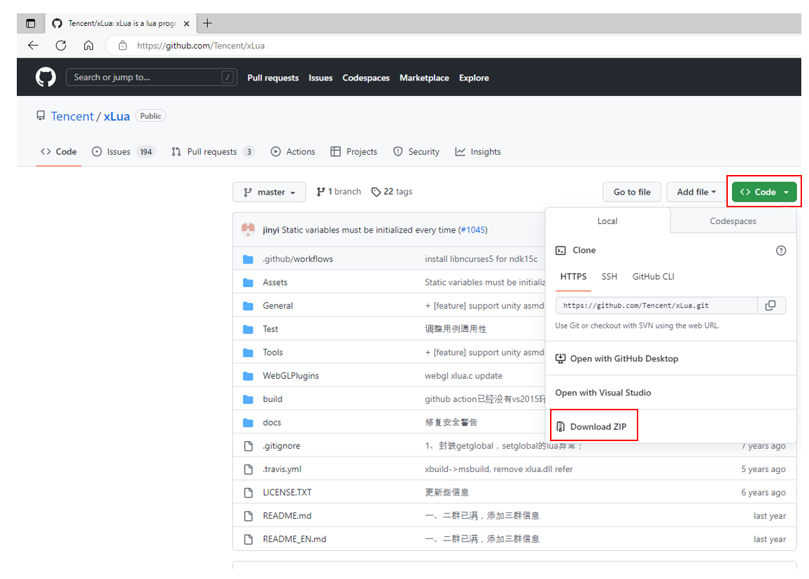 2.1 xLua 프로젝트 다운로드하기