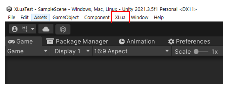 상단에 XLua가 표시되면 정상적으로 설치가 된 거예요.