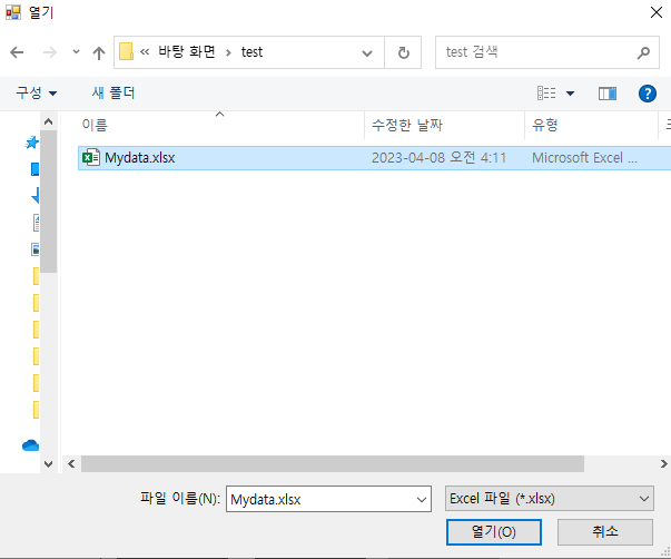 데이터파일을 선택하고