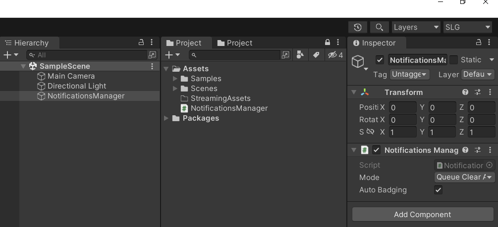 샘플 생성확인 후 NotificationsManager.cs 스크립트 작성